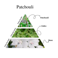 - Notes Olfactives : Les notes de fond sont souvent enrichies par l’ajout de musc, d’ambre ou de vanille, qui adoucissent et équilibrent la profondeur du patchouli. Ces éléments ajoutent une douceur presque sensuelle à la fragrance, la rendant chaleureuse, enveloppante et durable dans l’air.